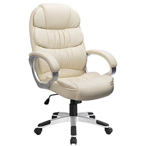Buy Furmax High Back Office Chair Pu Leather Executive Desk Chair With Padded Armrestsadjustable Ergonomic Swivel Task Chair With Lumbar Supportcreamy-white Online In New Zealand B07crxxst1
